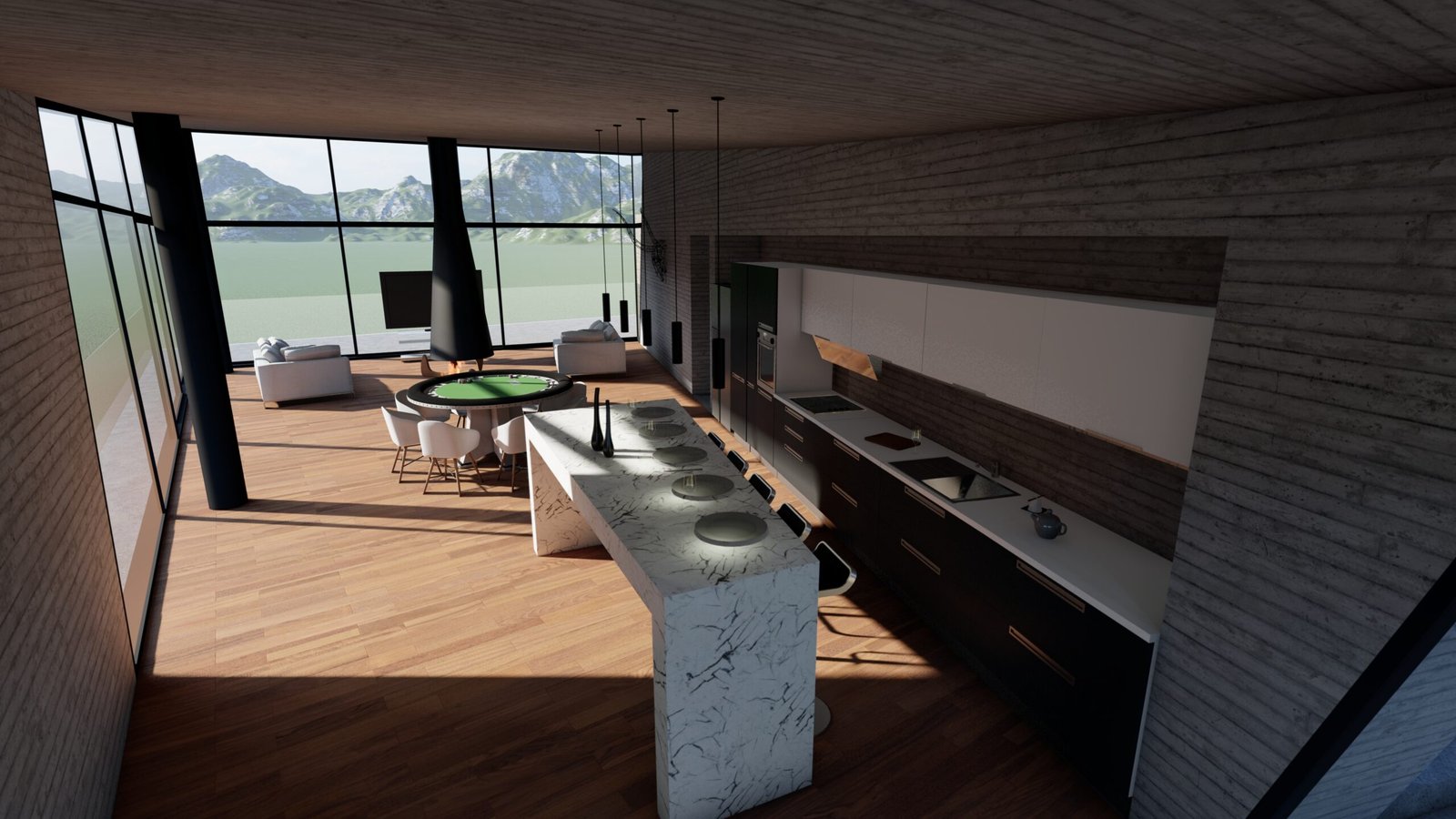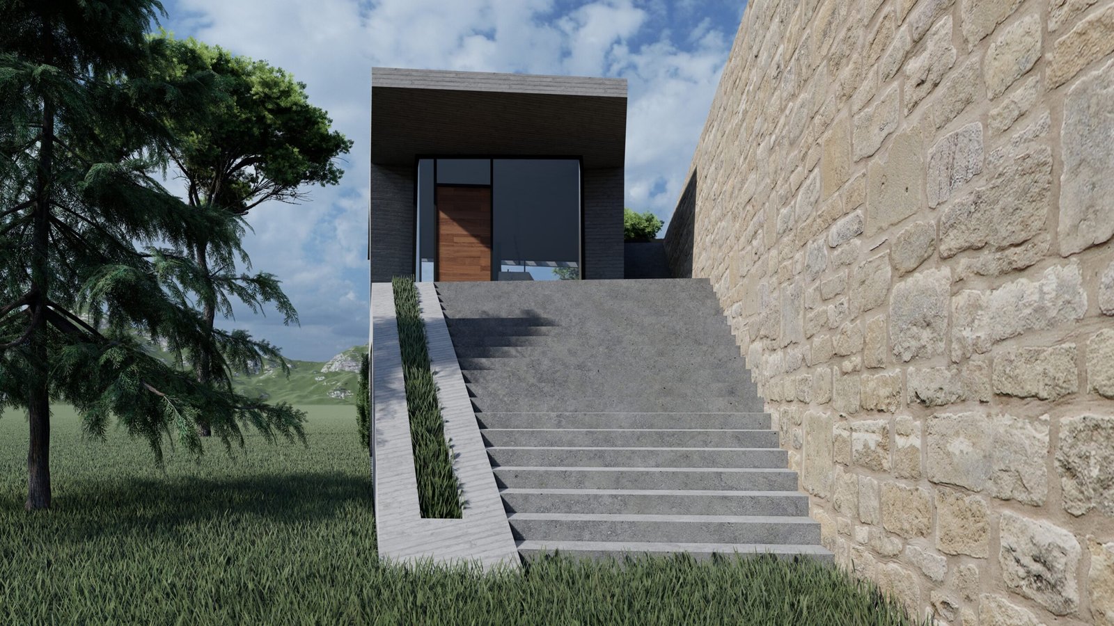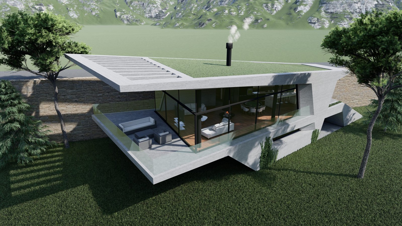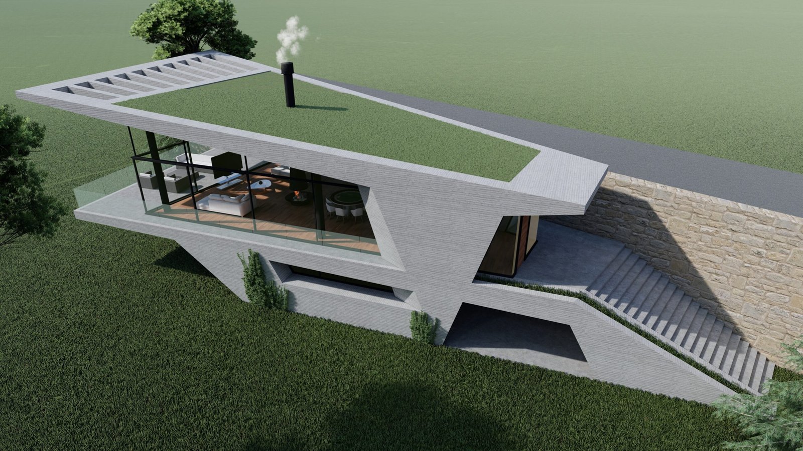 This innovative pergola, crafted from far-faced concrete, offers a seamless indoor-outdoor living space. Designed to maximize natural light and provide shelter, it serves as a versatile retreat for relaxation and gatherings, blending harmoniously with its surroundings.