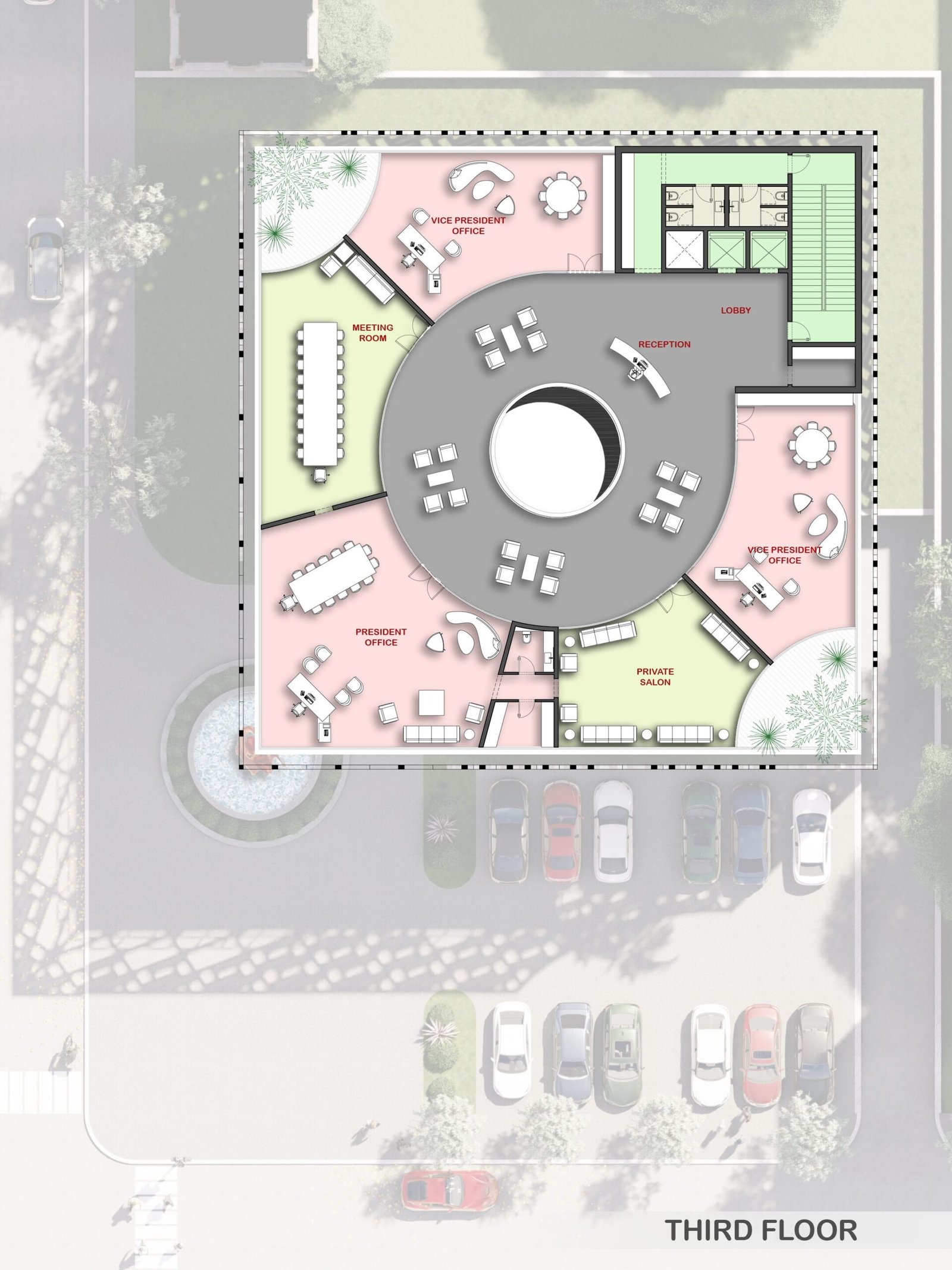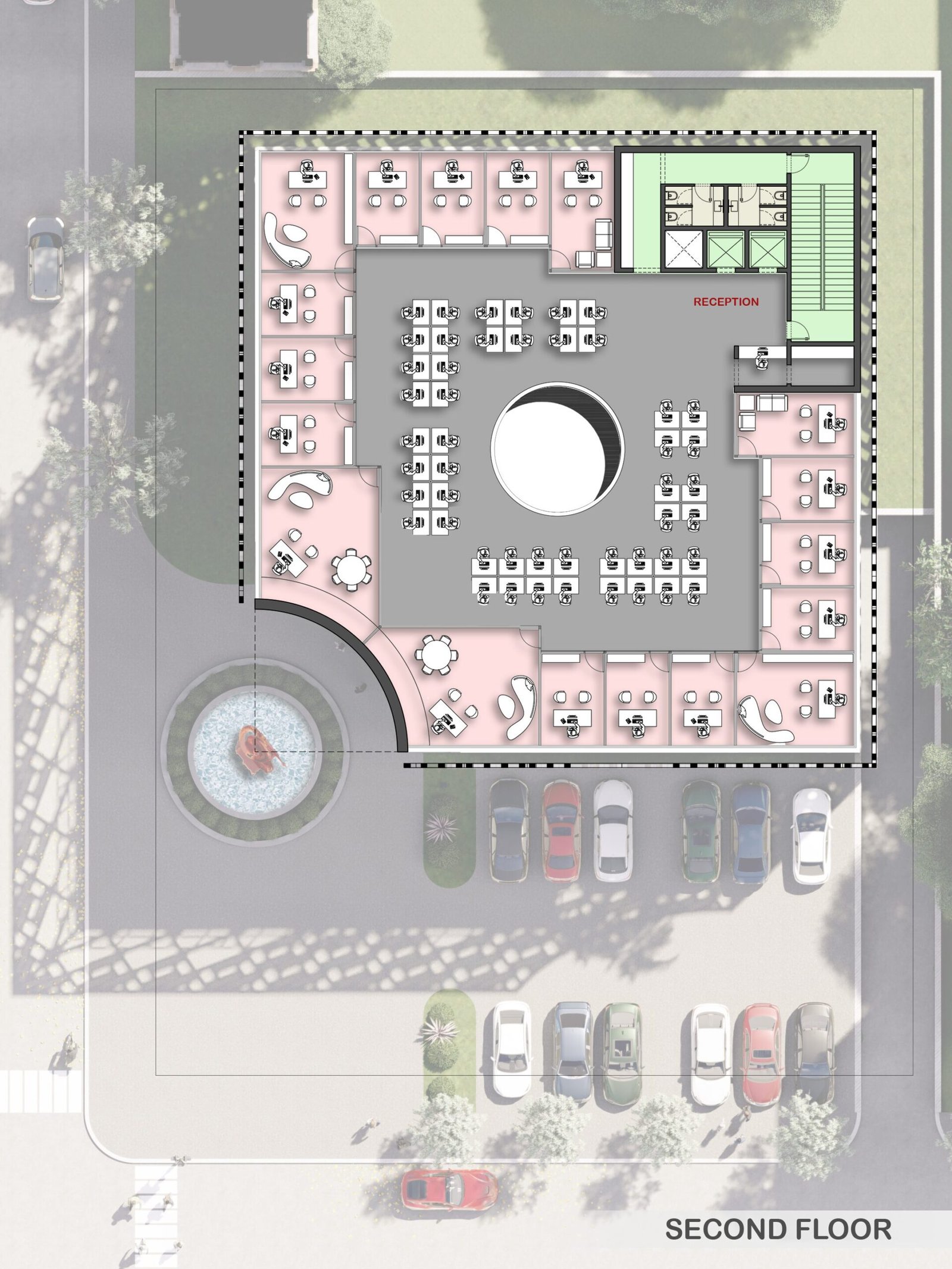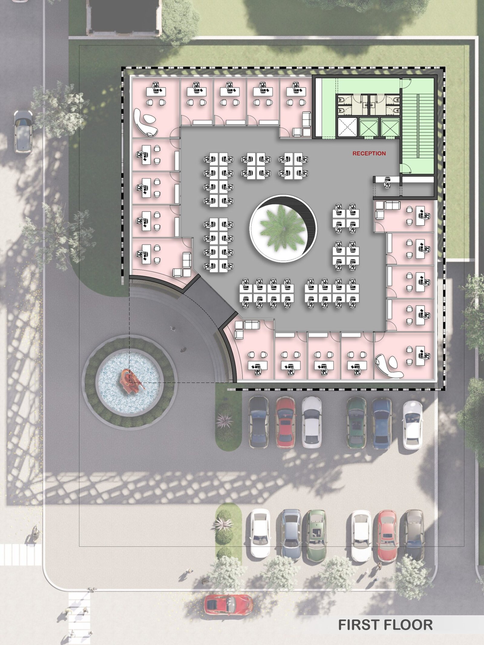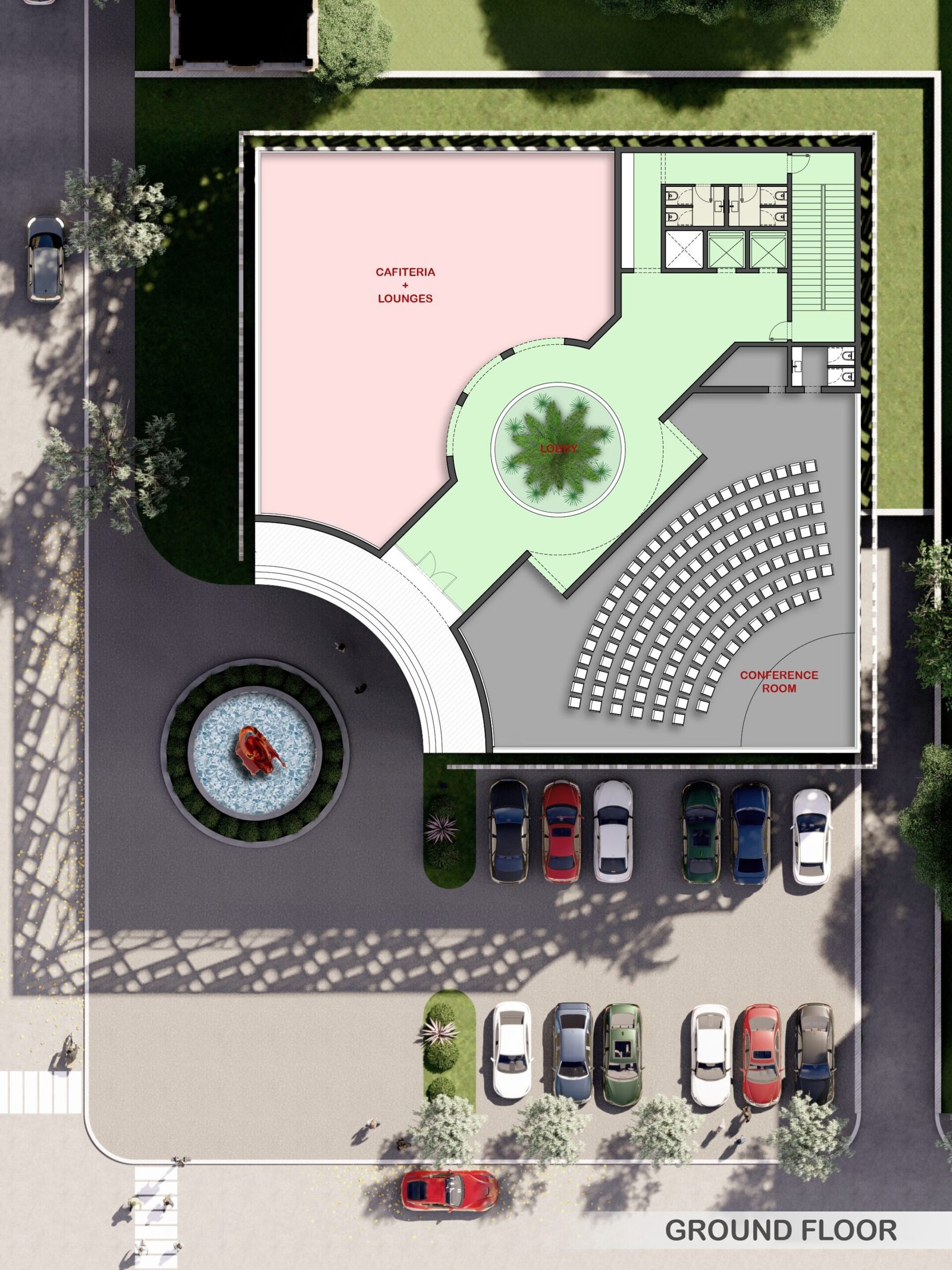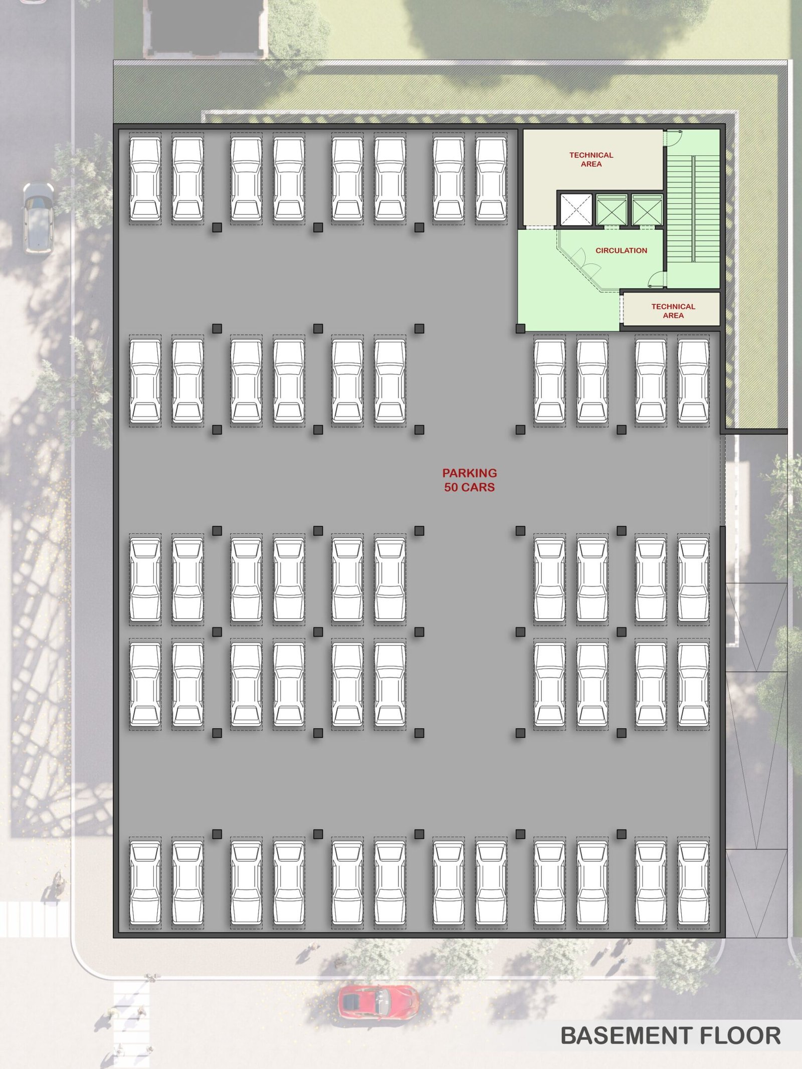 This project features a square, functional volume wrapped in a sleek metal mesh structure. Combining transparency and sustainability, the mesh provides shade, reduces heat gain, and allows natural light to filter through. This practical yet bold design enhances energy efficiency while creating a striking modern aesthetic.