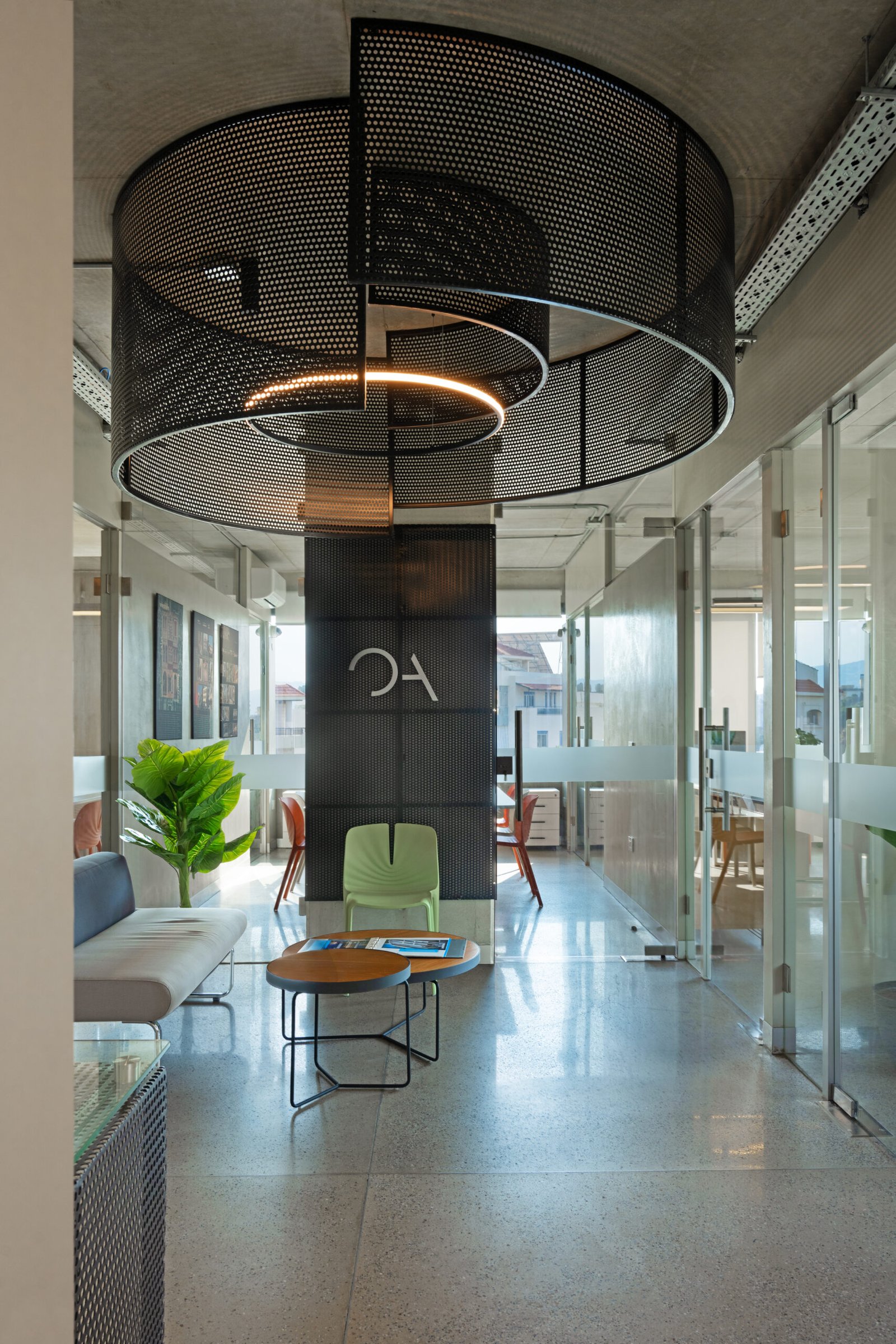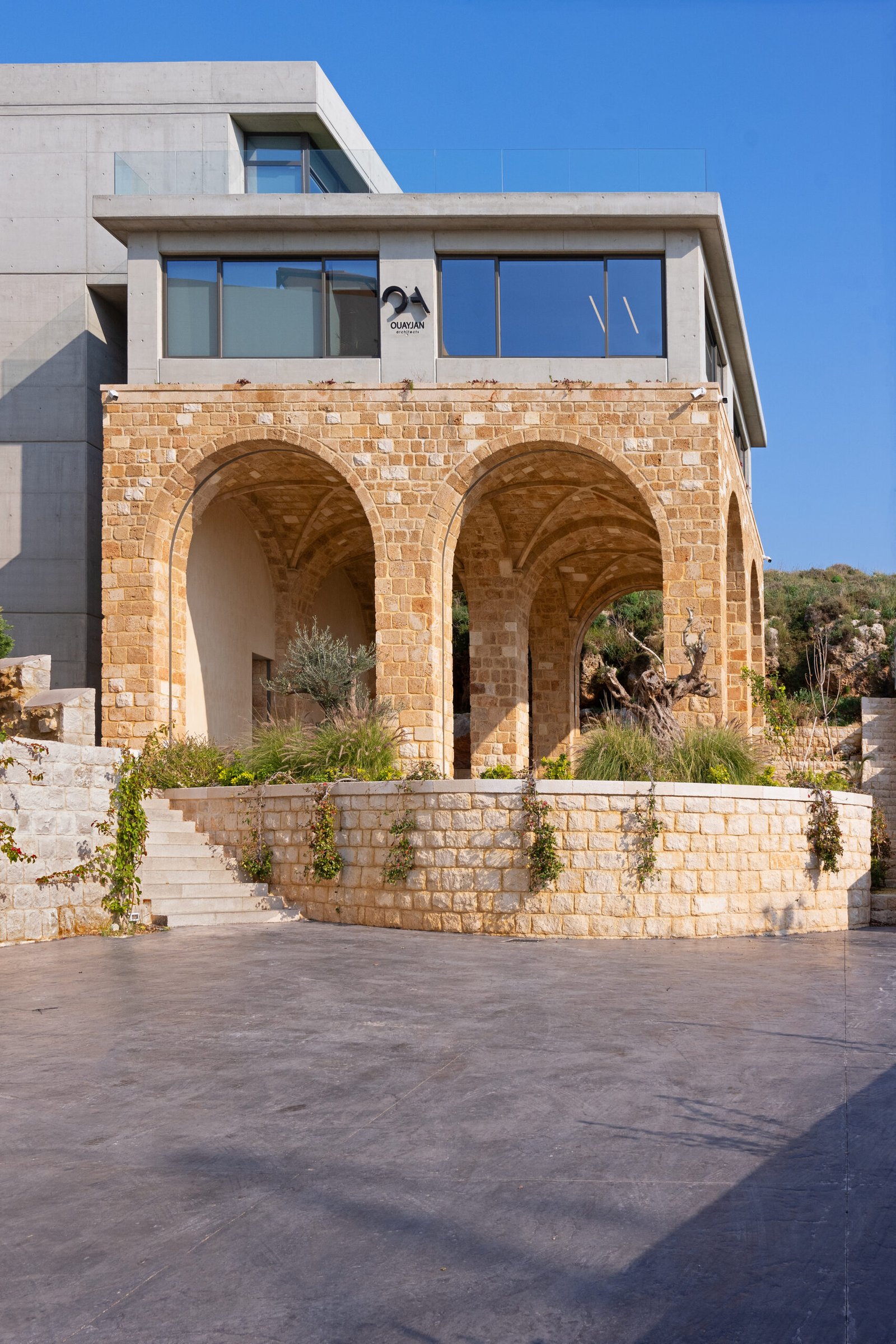 Our office building reflects the harmony between historical charm and contemporary design. The exterior showcases beautifully preserved traditional stone arches and vaulted ceilings, paying tribute to local heritage, while clean concrete volumes and expansive glass façades introduce a modern edge. This balance between old and new architecture mirrors a design approach that is respectful of the past, yet forward-thinking. Inside, the interior is designed to inspire creativity and collaboration.