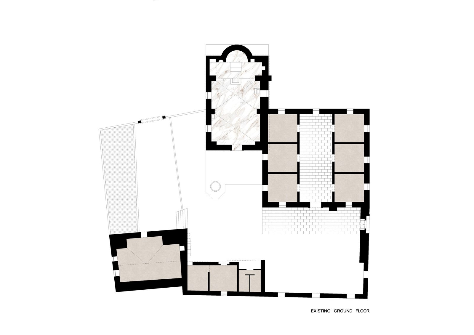 This stone church features elegant arches and a spacious main room for worship.